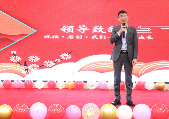 2021年是值得君創(chuàng)人回味的一年,這一年我們?nèi)〉昧税寥说某煽儯谶@成功的背后大家不能忘記有這么一個(gè)人。我們君創(chuàng)正因?yàn)樵谒膸ьI(lǐng)下才能夠健康的成長,能夠在激烈的市場競爭中抓住先機(jī)。也正因?yàn)樗?,我們在每每遇到坎坷之時(shí),都能走出荊棘,取得最后的勝利。年會的序幕緩緩被拉開,君創(chuàng)鎖業(yè)總經(jīng)理張總發(fā)表了重要的講話,在講話中張總?cè)婵偨Y(jié)了2021年的工作,并對2022年的工作做了系統(tǒng)的安排和部署。張總也為大家送上了真摯的祝福,希望大家在新的一年里工作順利,家庭幸福。
